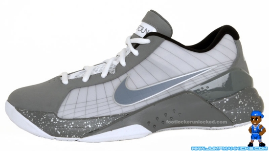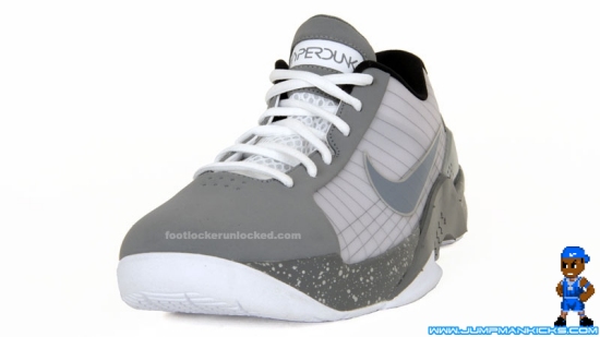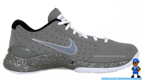 Check out these new pics of one of upcoming cool grey Hyperdunk Lows. This pair has a grey upper with a clear panel revealing the Flywire, and a grey midsole covered with grey speckles. Expect to see these in February or March.