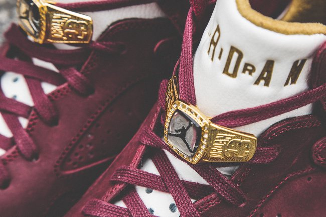 For those not aware, today marked the official release of the Air Jordan 7 Champagne and Cigar Pack. Takign inspiration from MJ’s tradition of lighting up cigars after a championship victory, this pack includes two colorways, Burgundy/White and White/Black. Both pairs have received metallic gold graphics and accents, as well as championship ring-inspired lacelocks. Sold individually, both pairs have a set retail price of $250. While almost all stores have undoubtedly sold out, you can still grab a pair online. Click here to see eBay’s search results or click here to purchase the pack at Amazon.